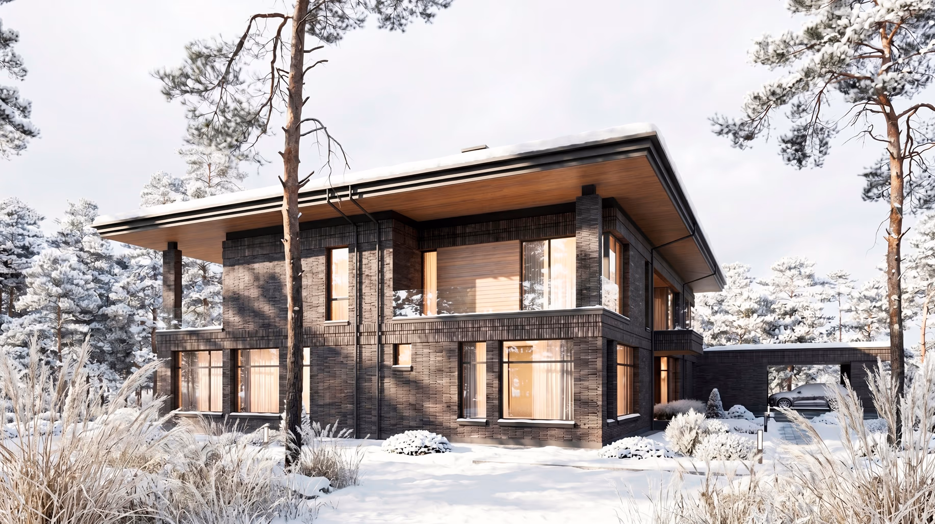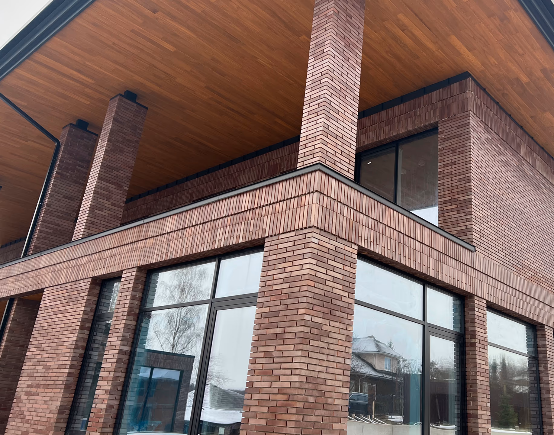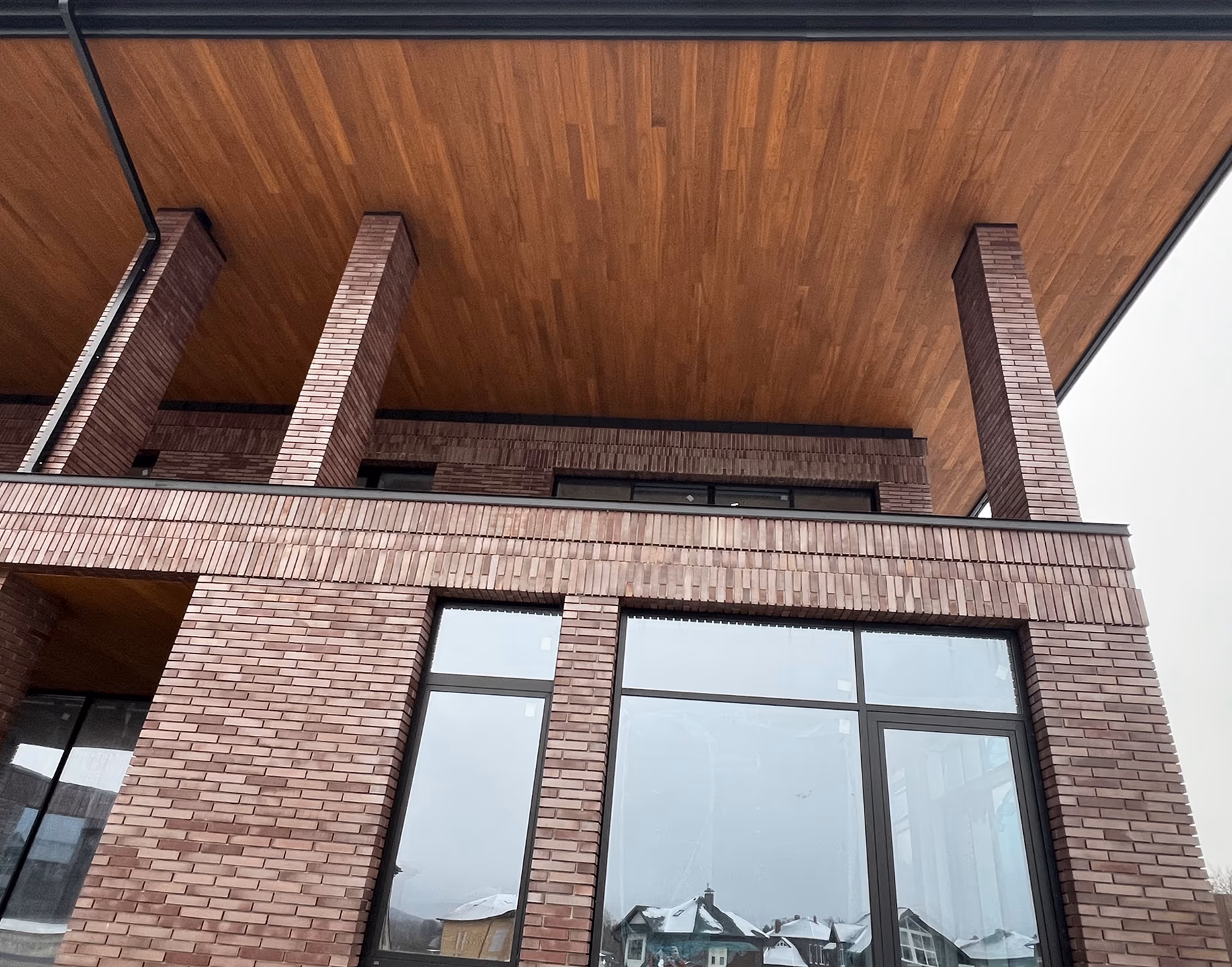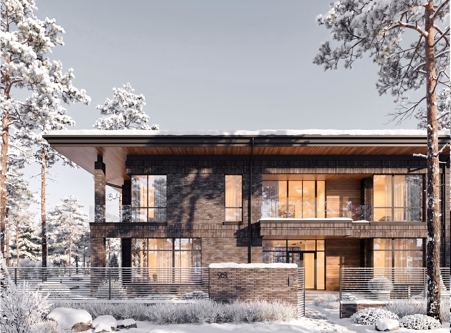 Жилой дом расположен в Московской области. Дом двухэтажный с террасой, обращенной на восточную сторону. Композиция дома состоит из двух разноэтажных объемов. Центральный объем имеет форму прямоугольника, с нишами террас и балконов