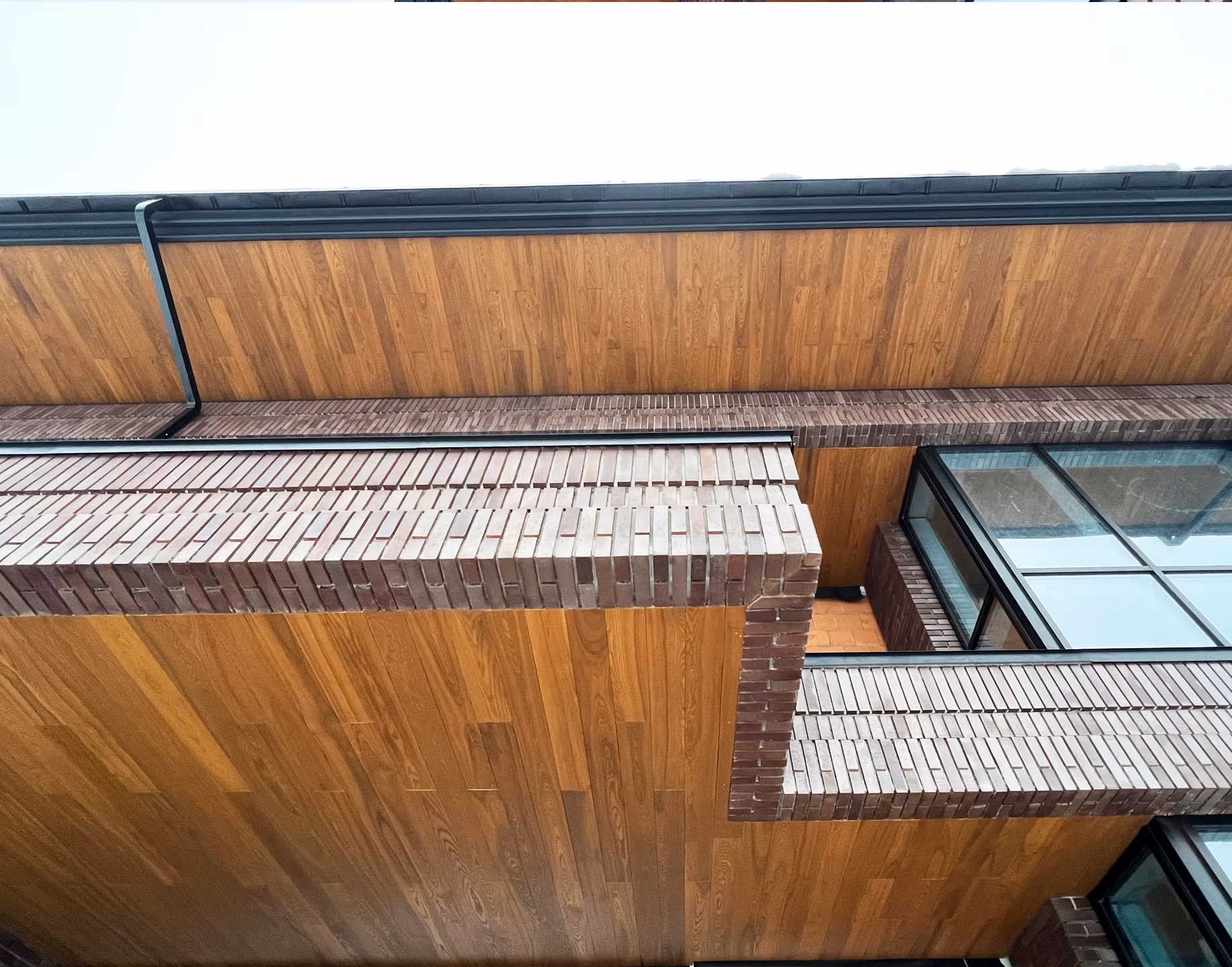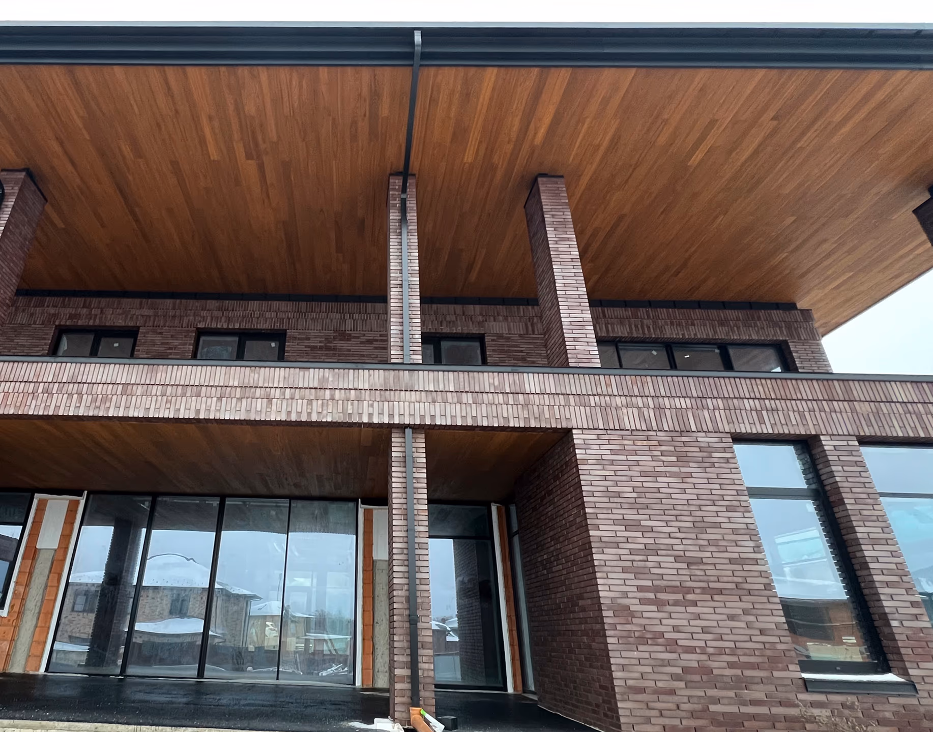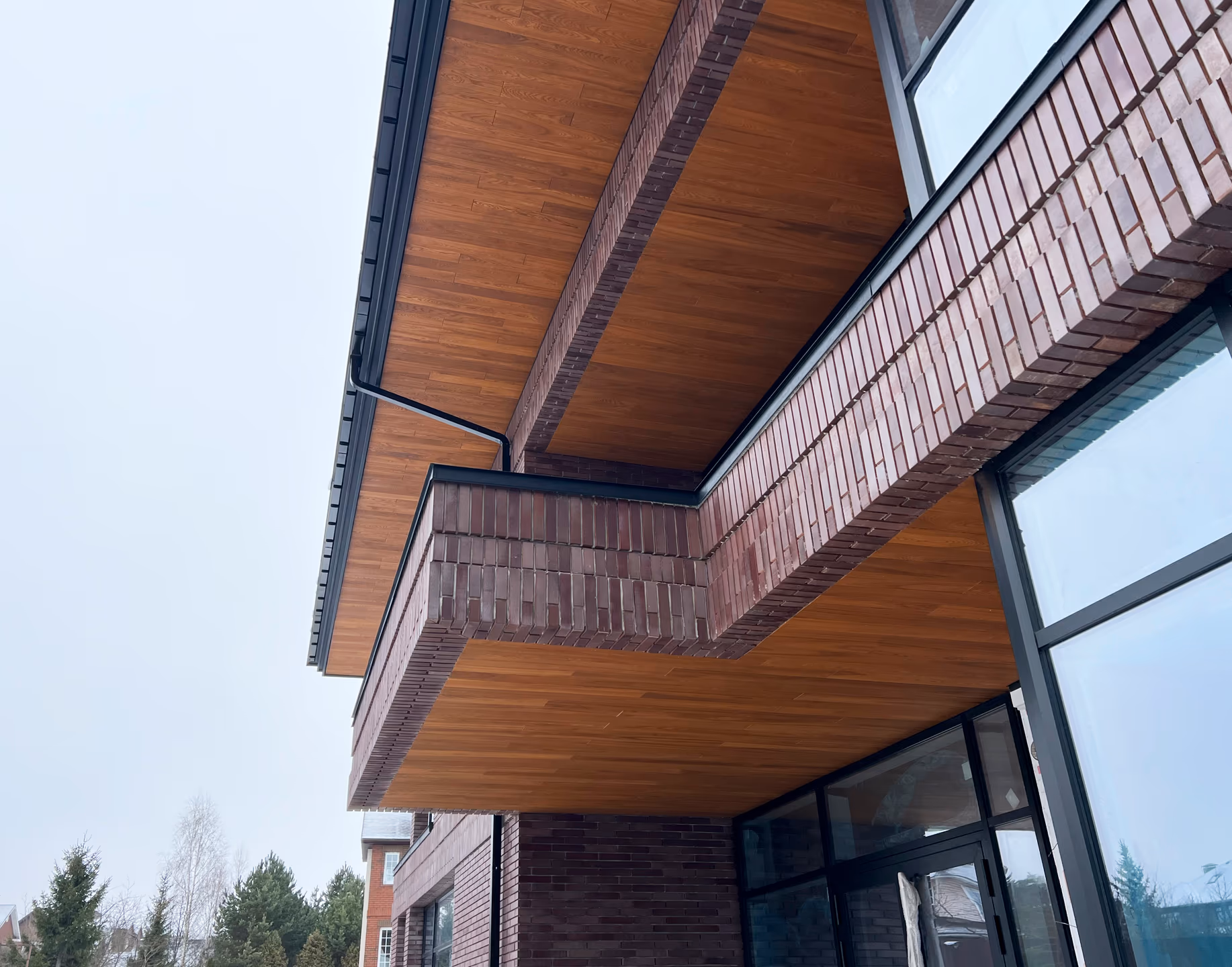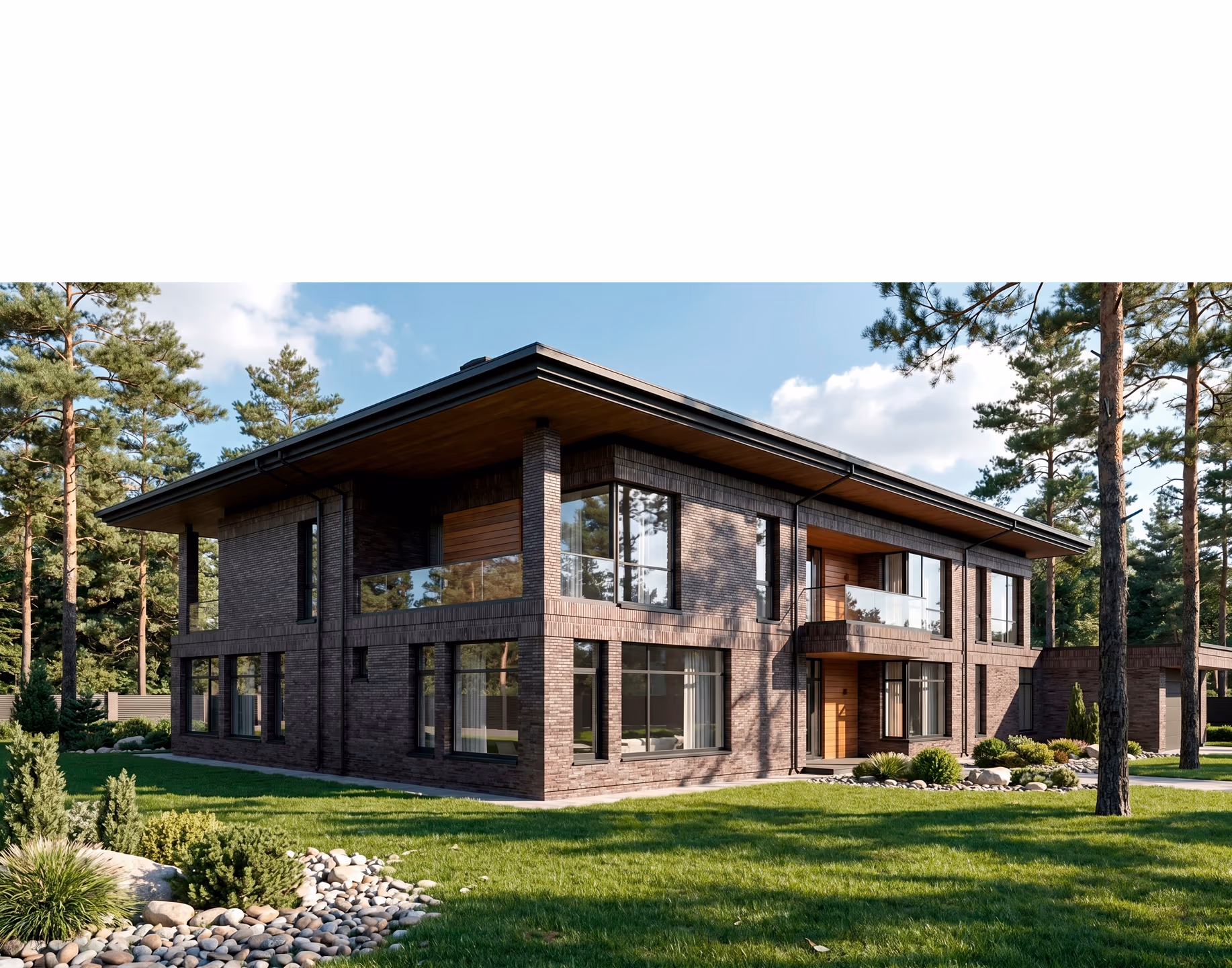 Жилой дом расположен в Московской области. Дом двухэтажный с террасой, обращенной на восточную сторону. Композиция дома состоит из двух разноэтажных объемов. Центральный объем имеет форму прямоугольника, с нишами террас и балконов