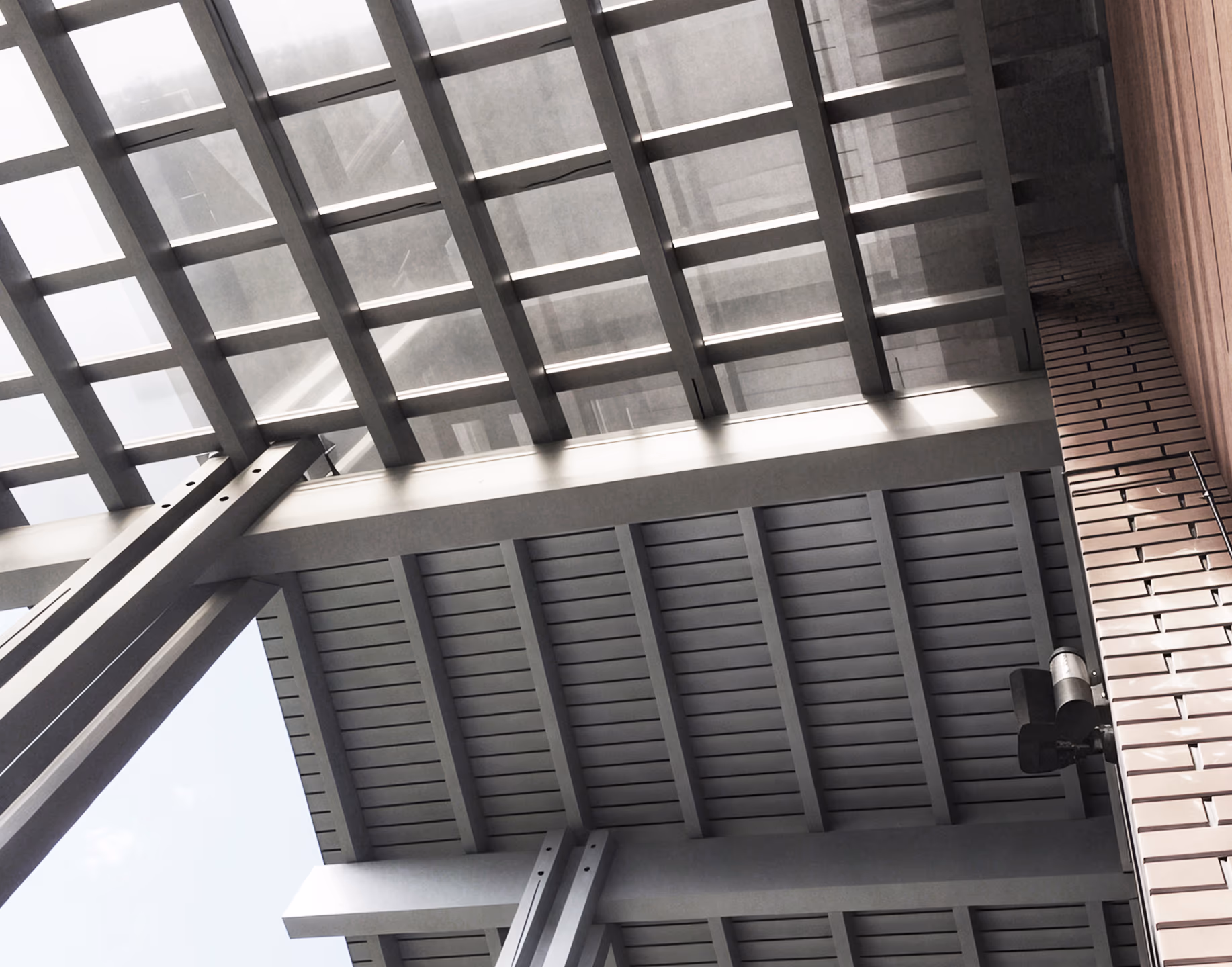 и деревянными деталями в виде ограждений и стоек.