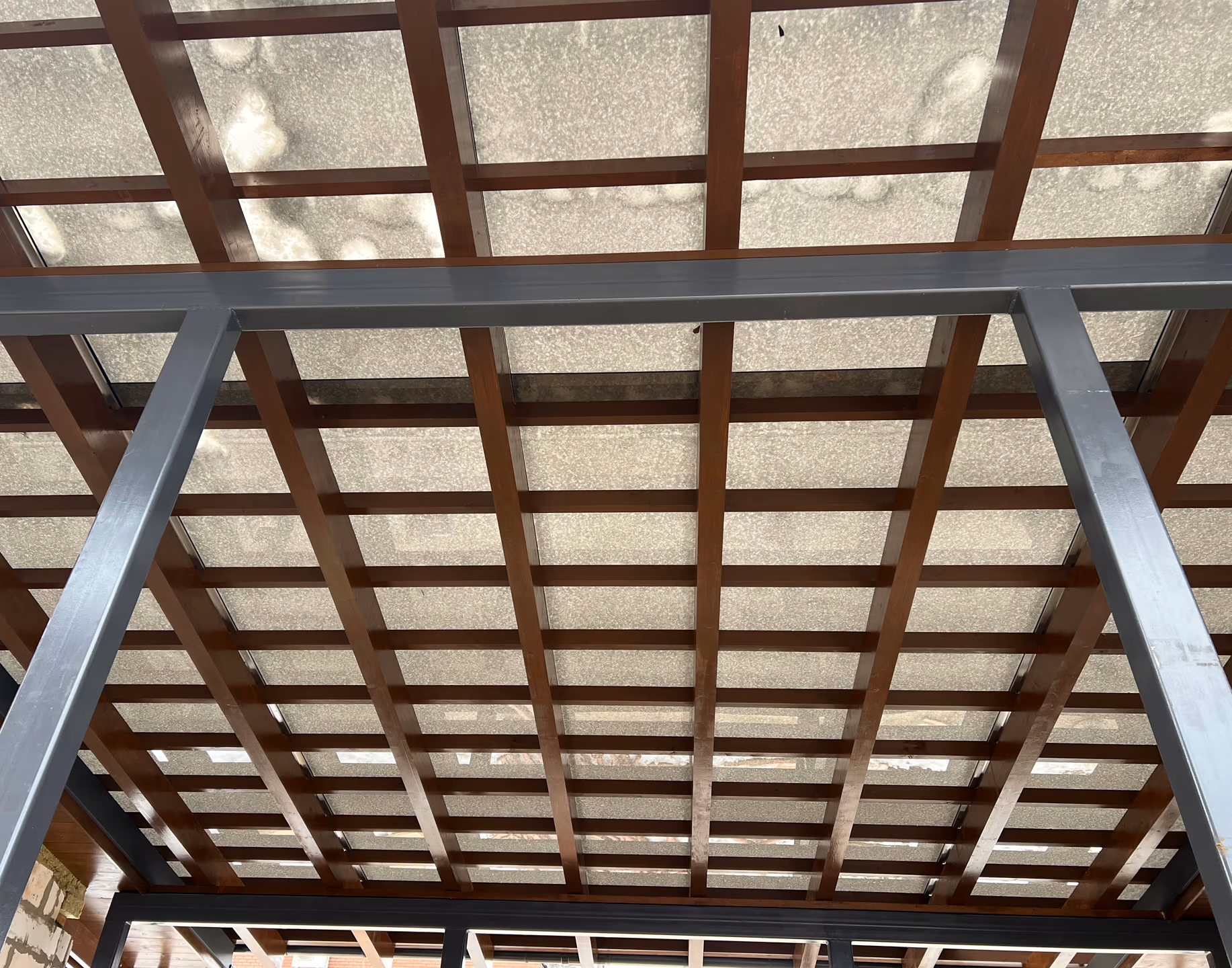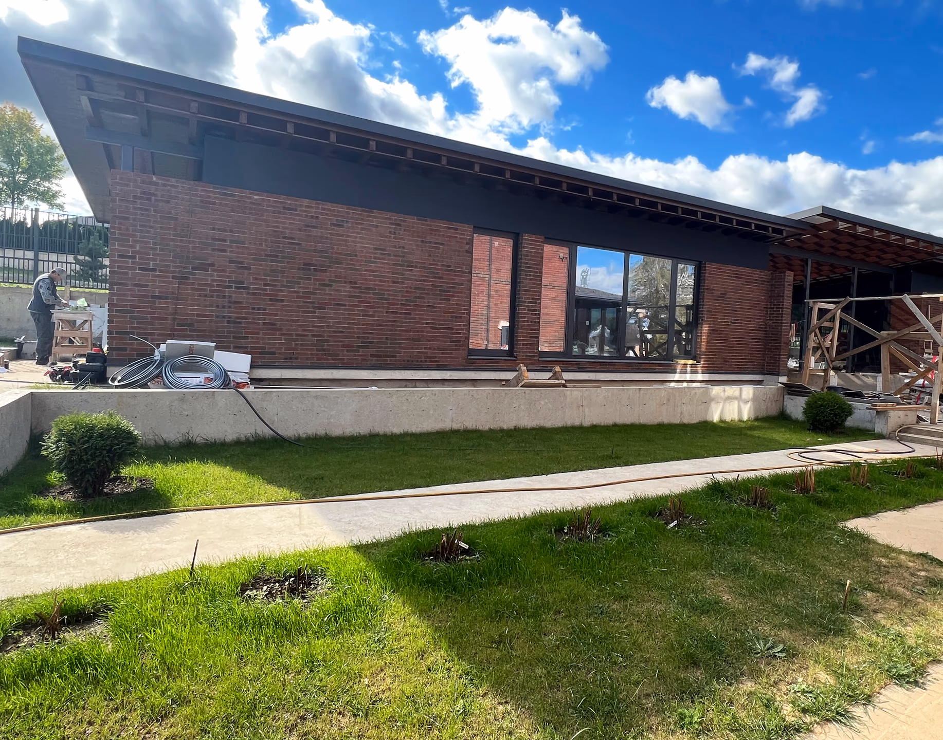 Внутри использованы контрастные материалы: термоабаш в парной, каменные облицовки в зоне SPA и текстильные панелы в комнате отдыха.